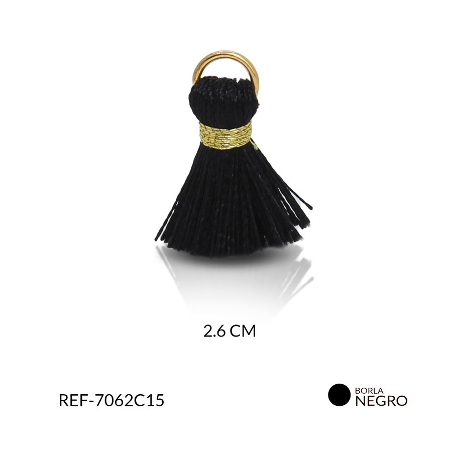 / Borla mini negro 2 cm / paquete x par / Ref-7062C15 / Ref-7062C15