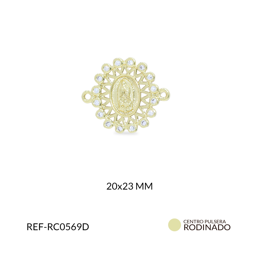 Centro pulsera rodinado Virgen Guadalupe 20x23mm / x unidad / ref-RC0569D / ref-RC0569D