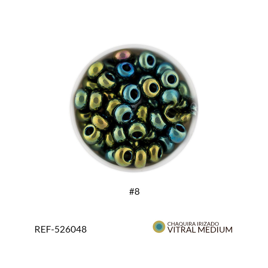 CHAQUIRA CHECA COLOR IRISADO VITRAL MEDIUM #8 / PAQUETE x 25 GRAMOS / Ref-526048P