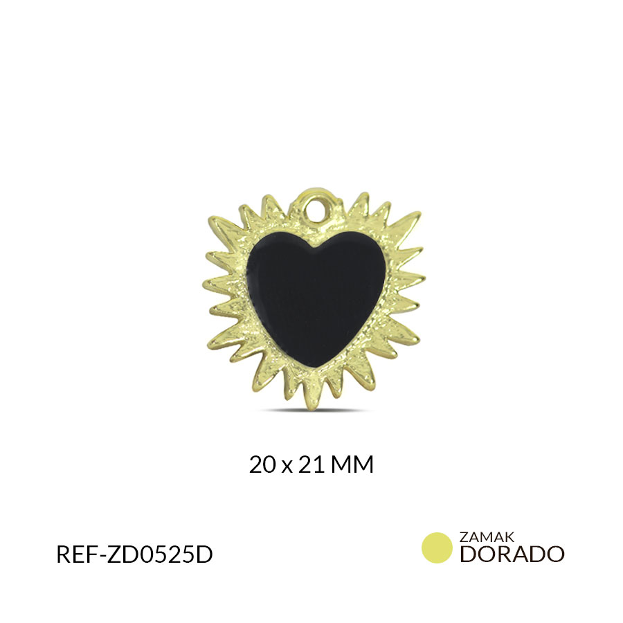 Dije zamak corazón destello resina negro 20x21MM / x unidad / Ref-ZD0525D / Ref-ZD0525D