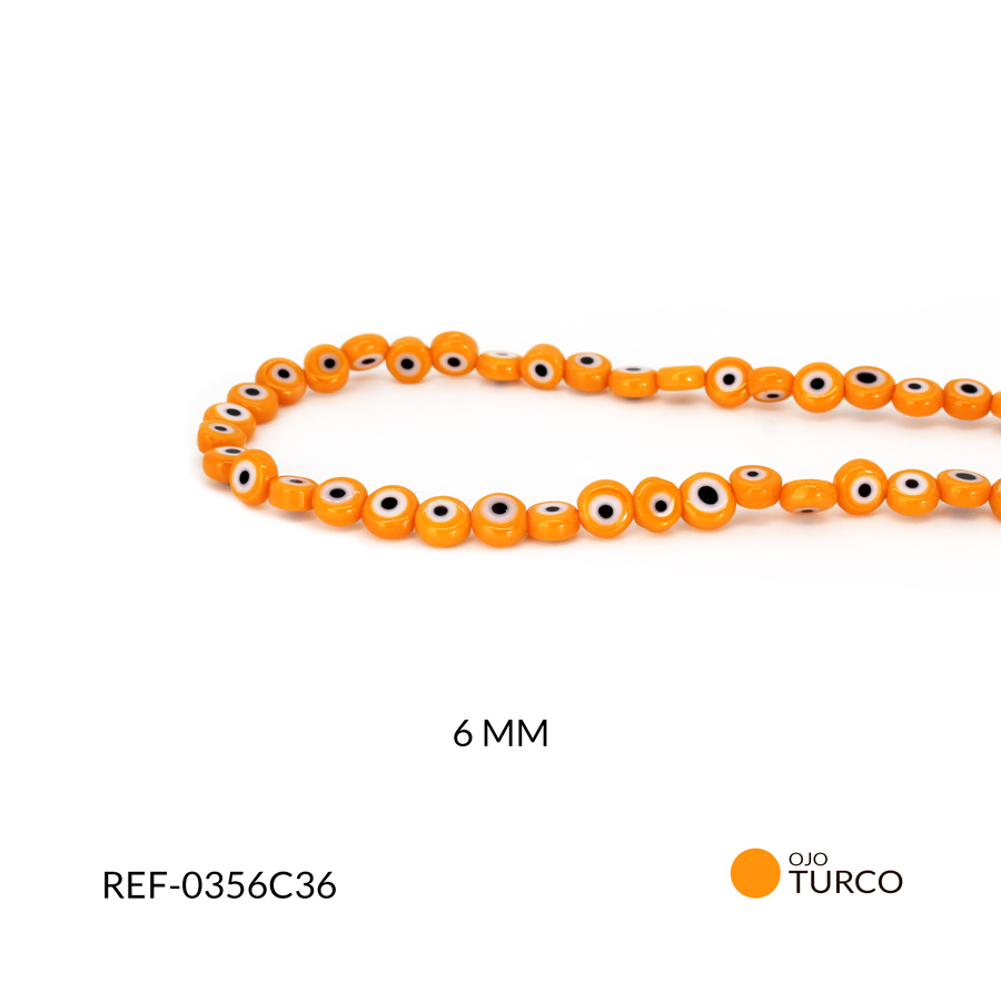 Ojo turco vidrio plano 6 mm color naranja / x sarta / Ref-0356C36